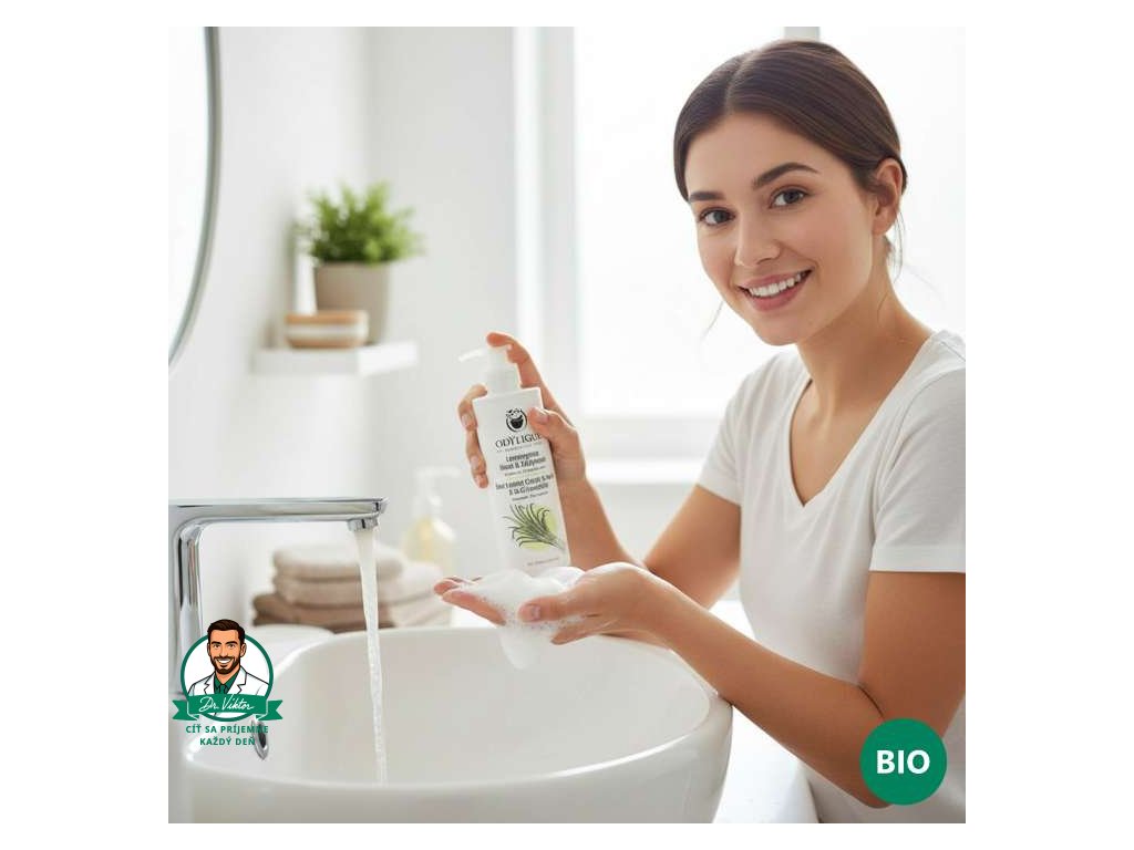 Jeho výnimočne jemné zloženie bez sulfátov rešpektuje prirodzené pH pokožky (5,5) a zachováva jej ochranný film. Obsahuje organický extra panenský olivový olej, ktorý vyživuje a zjemňuje, a aloe vera, ktorá upokojuje a zanecháva pokožku sviežu, hydratovanú a hebkú.