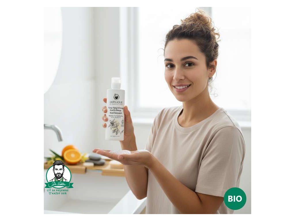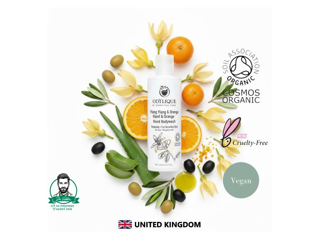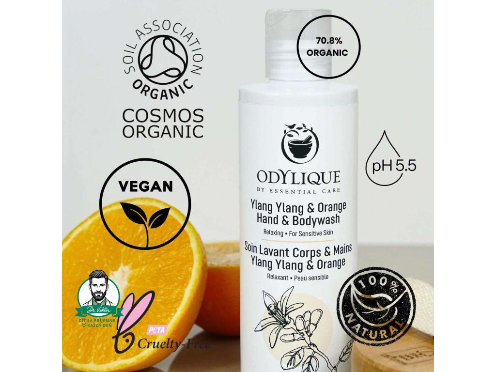 Krémový, zvláčňujúci sprchový gél s organickými esenciálnymi olejmi ylang-ylang a pomaranča obalí pokožku vo vôni a zanechá ju mäkkú, upokojenú a hydratovanú. Jemne čistí bez sulfátov (SLS, SLES, SCS), je pH 5,5 – v rovnováhe s pokožkou – a obsahuje bio aloe vera na upokojenie a extra panenský olivový olej pre výživu. Vhodný pre citlivú pokožku aj vegánov. V recyklovateľnom obale, fľaša z 50 % recyklátu, ručne vyrábané v UK.