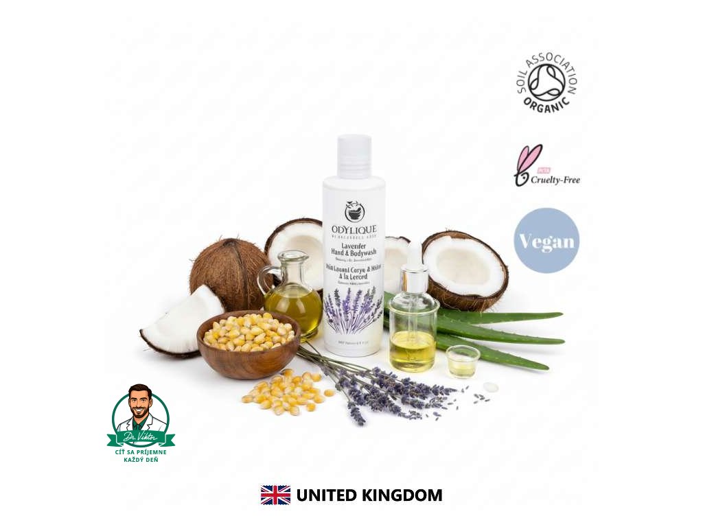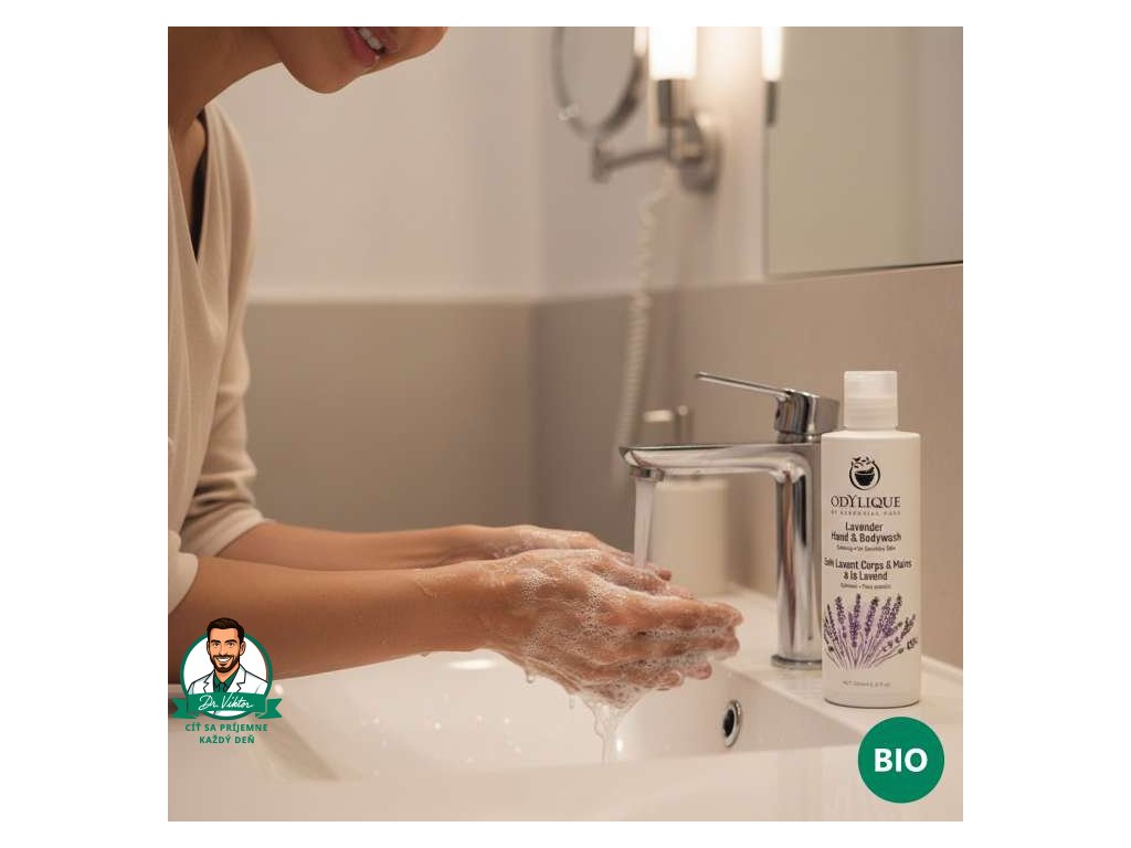 Extra panenský olivový olej zjemňuje a regeneruje, aloe vera prináša úľavu a hydratáciu, zatiaľ čo esenciálne oleje z levandule a lavandínu pôsobia relaxačne na telo i myseľ. Je ideálny aj ako prírodné tekuté mydlo na ruky – zvlášť pre citlivú alebo suchú pokožku.
