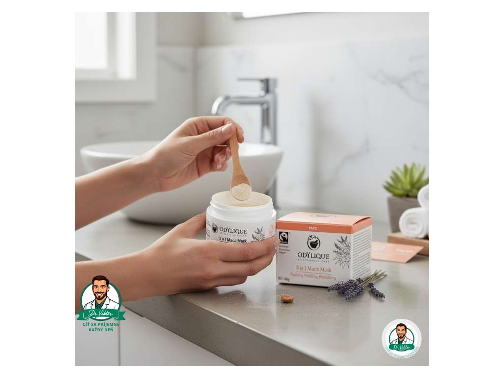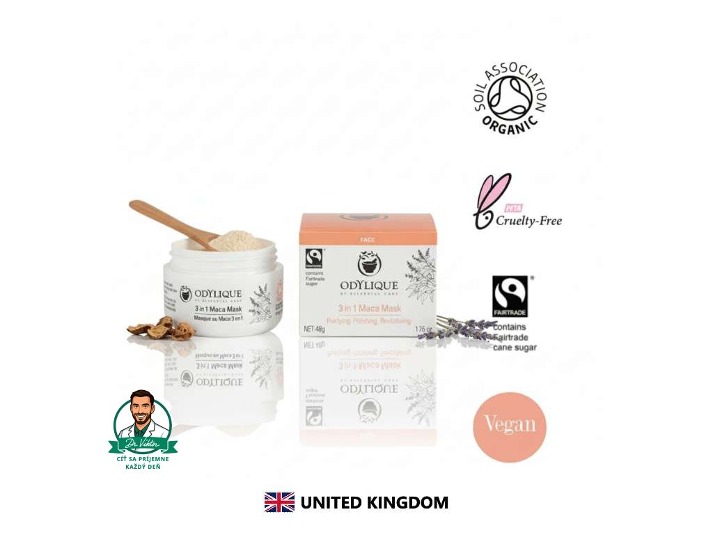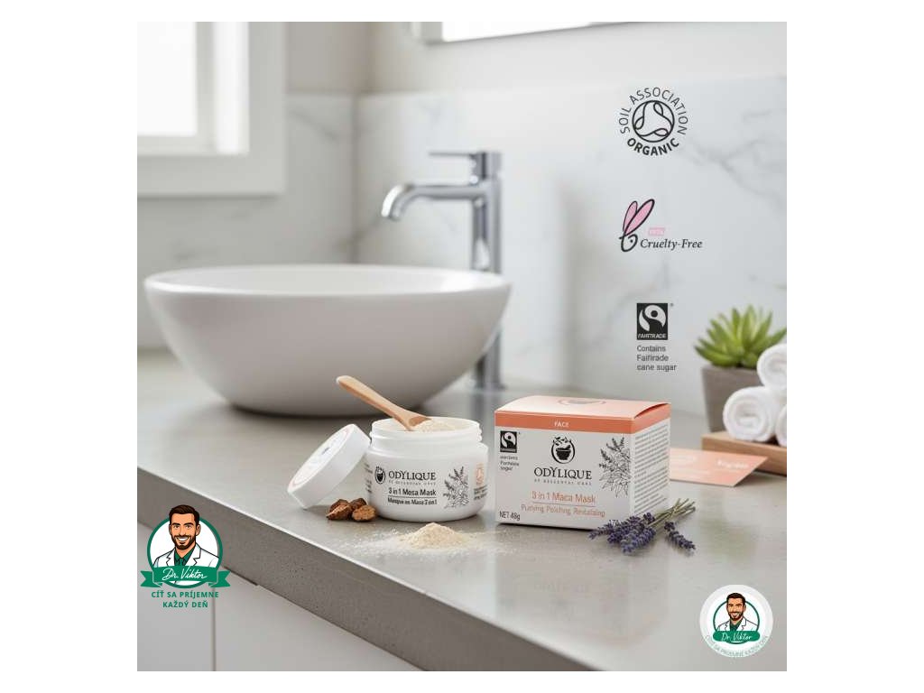 🌿 Odylique 3-v-1 Maca maska 48 g – čistenie, rozjasnenie a regenerácia pleti v jednom kroku