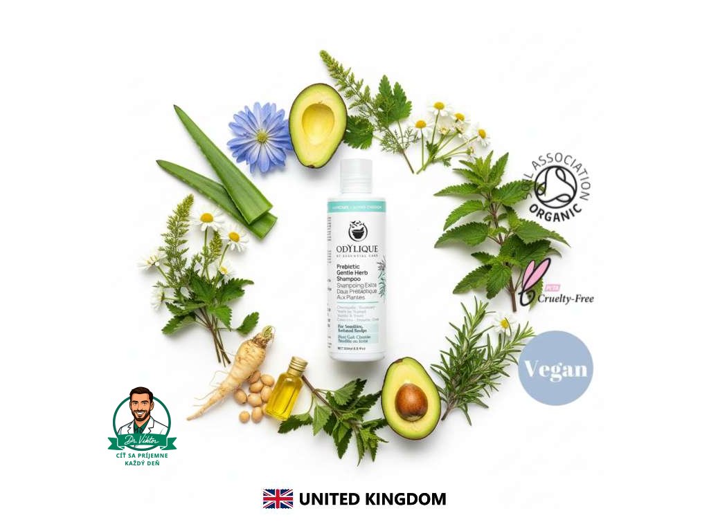 Zaži revolúciu v starostlivosti o vlasy a pokožku hlavy 💚 Tento prebiotický jemný bylinkový šampón Odylique spája ikonickú receptúru Gentle Herb s prebiotickým extraktom z čakanky, ktorý podporuje rovnováhu mikrobiómu pokožky hlavy – základ zdravej, sviežej a bezproblémovej pokožky.
